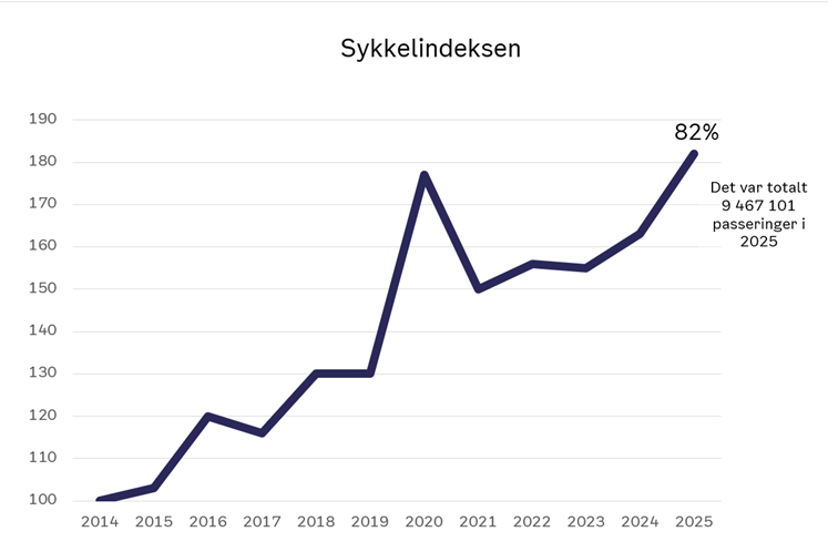 9,5 millioner sykkelpasseringer i 2025