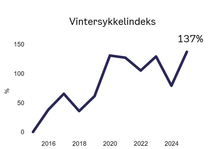 Denne vintersesongen kan også slå nye rekorder. «Julesyklingen» i desember 2025 var mer enn 30 prosent høyere enn året før.