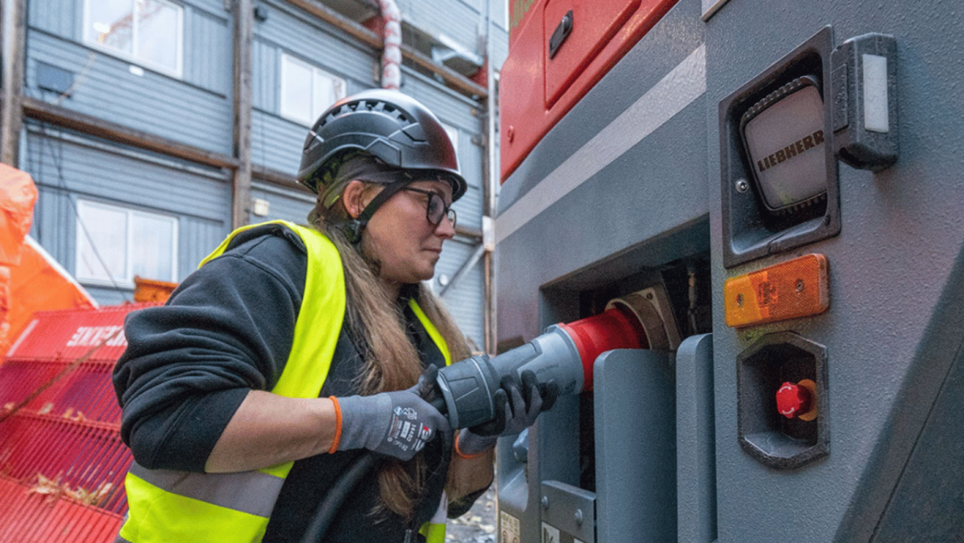 - Bedre arbeidsmiljø: For kranførere og de som jobber «på bakken» rundt kranen, betyr elektrifisering slutten på eksos, vibrasjoner og sjenerende lukt.